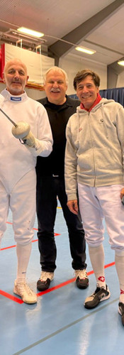 Die Fechtgesellschaft Basel war letztes Wochenende mit zwei Fechtern am European Veteran Fencing Circuit EVF vertreten. An einem recht nassen und verregneten Wochenende organisierte der Stockholms Fäktförbund dieses gut besuchte und gut organisierte Turnier in zwei nebeneinander liegenden Hallen. Insgesamt war die Schweizer Delegation stark vertreten und sehr erfolgreich. Das Turnier zählt zur schweizer Rangliste und zur Qualifikation für die Europameisterschaften Veteranen im Mai dieses Jahres. Unsere beiden Vereinsmitglieder erreichten super Plätze. So gewann Gabriel Nigon bei der Kategorie V4 und Philippe Wälle erreichte den 5. Rang in der Kategorie V3. Damit ist für beide eine Teilnahme an den Europameisterschaften etwas näher gerückt. Gabriel Nigon brachte unseren früheren Maître Manfred Beckmann mit, welcher ihn lange Zeit als Fechter und Funktionär von Swiss Fencing begleitete. Dies war ein schönes Wiedersehen.