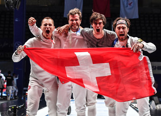 Sensationell! Die Schweizer Herren Degen Mannschaft gewinnt zum ersten Mal eine Mannschafts-Goldmedaille an den Weltmeisterschaften.